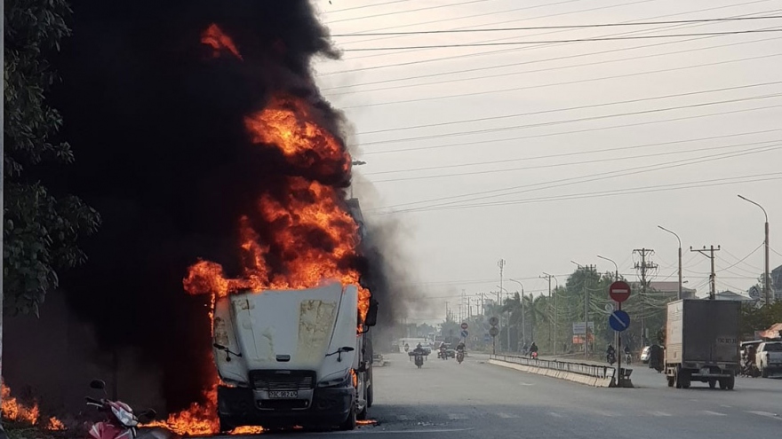 VOV.VN - Khoảng 15h chiều nay (11/1), người dân thuộc phường Yên Thọ, thị xã Đông Triều, tỉnh Quảng Ninh tá hỏa khi phát hiện 1 chiếc container đang bốc cháy dữ dội ở ven đường.
