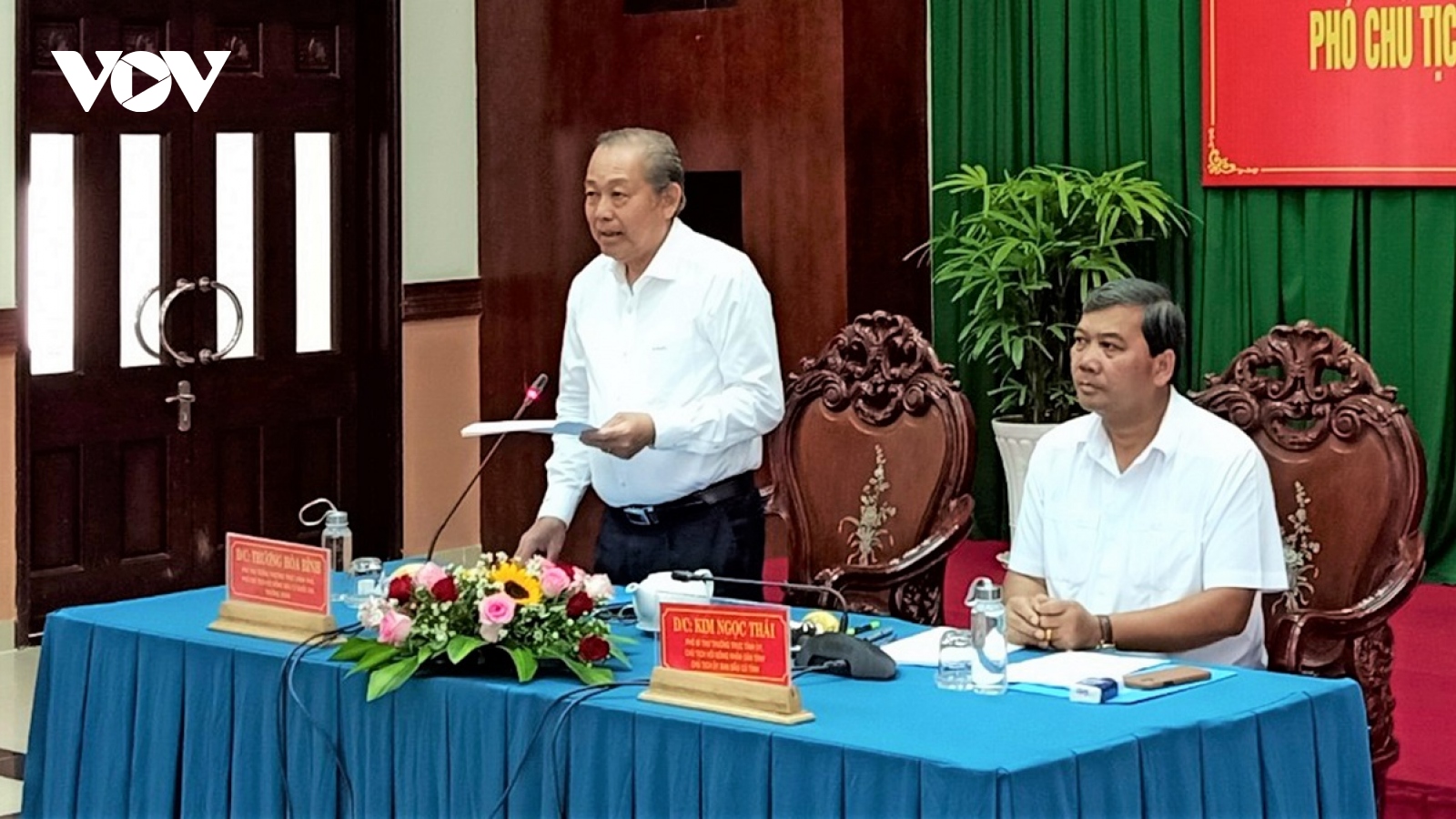 VOV.VN - Ngày 20/4, Phó Thủ tướng Thường trực Chính phủ Trương Hòa Bình, Phó Chủ tịch Hội đồng bầu cử quốc gia cùng đoàn công tác đã đến giám sát, kiểm tra công tác bầu cử đại biểu Quốc hội khóa XV và Hội đồng nhân dân các cấp nhiệm kỳ 2021-2026 tại tỉnh Trà Vinh.