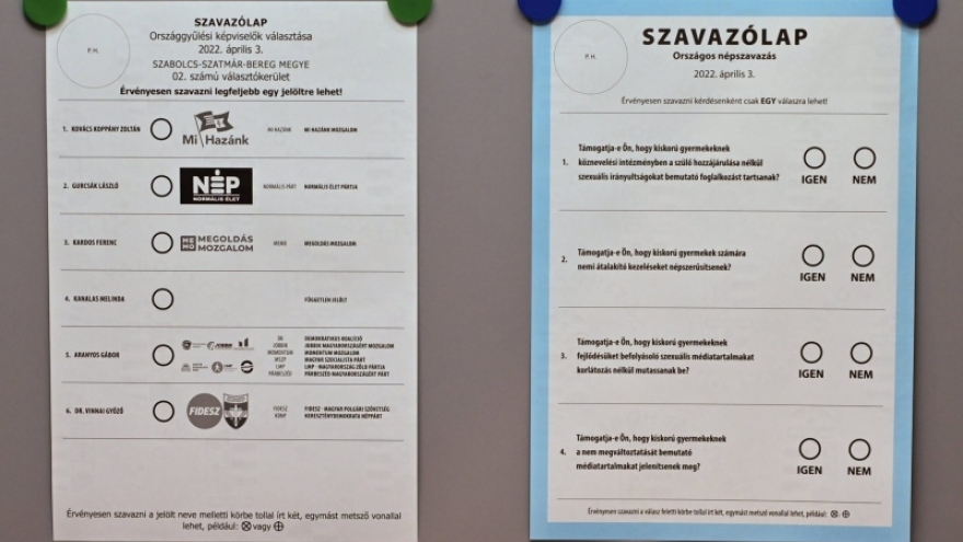 VOV.VN - Bộ trưởng Ngoại giao Hungary Peter Szijjarto ngày 2/4 cho biết, các cuộc bầu cử quốc hội và trưng cầu dân ý về “bảo vệ trẻ em” đã bắt đầu tại các cơ quan đại diện nước ngoài của Hungary từ lúc 11h sáng (theo giờ địa phương).