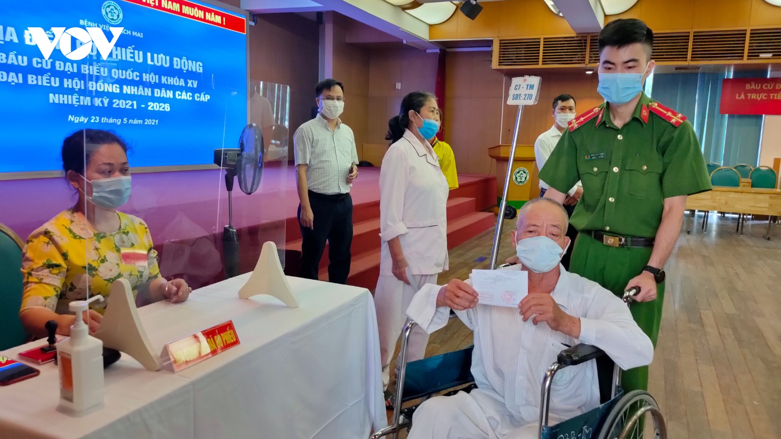 VOV.VN - Thượng tướng Phan Văn Giang, Uỷ viên Bộ Chính trị, Phó Bí thư Quân uỷ TƯ, Bộ trưởng Bộ Quốc phòng; Đại tướng Lương Cường, Uỷ viên Bộ Chính trị, Chủ nhiệm Tổng cục Chính trị QĐND Việt Nam đã bỏ lá phiếu bầu cử tại khu vực bỏ phiếu số 11, phường Điện Biên, quận Ba Đình.