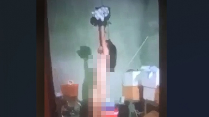 VOV.VN - Người đàn ông xuất hiện trong clip trói, treo bé gái lên xà nhà rồi đánh bằng roi là bố của cháu bé. Hiện người này không có mặt tại địa phương.