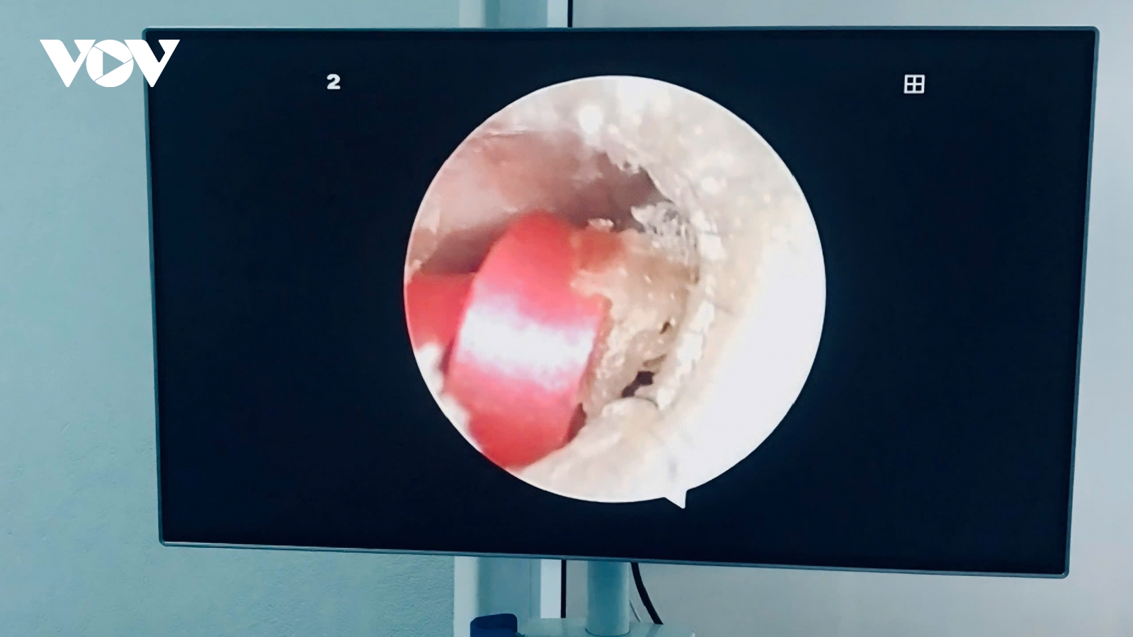 VOV.VN - Các bác sĩ tại Phòng khám Tai Mũi Họng – Khoa Khám bệnh và Điều trị ngoại trú, Bệnh viện Bệnh Nhiệt đới Trung ương vừa xử trí thành công một trường hợp dị vật tai nguy hiểm ở trẻ nhỏ. Bệnh nhi là bé gái 6 tuổi, suýt bị thủng màng nhĩ do một đoạn dây buộc tóc bằng cao su nằm sâu trong ống tai.