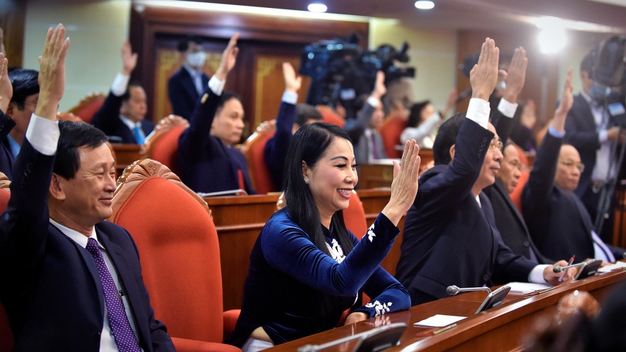 VOV.VN - Ban Chấp hành TƯ đã thảo luận dân chủ, kỹ lưỡng, bỏ phiếu biểu quyết với sự nhất trí rất cao nhân sự tham gia Bộ Chính trị, Ban Bí thư khoá XIII, gồm cả nhân sự Bộ Chính trị, Ban Bí thư khoá XII tái cử và nhân sự lần đầu tham gia Bộ Chính trị, Ban Bí thư.