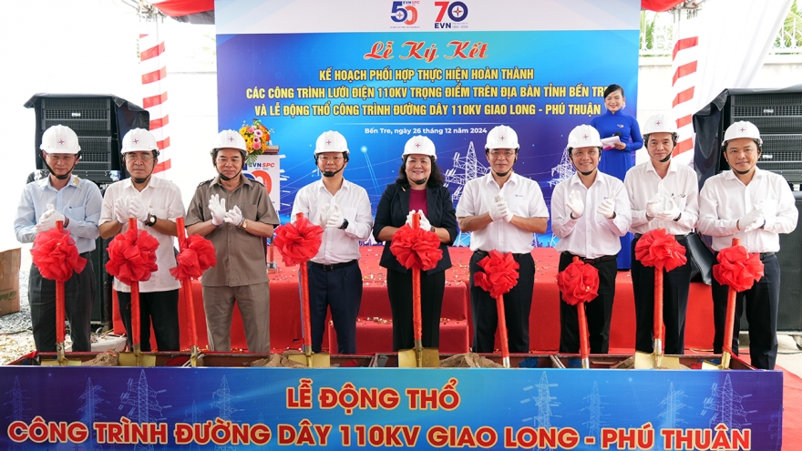 VOV.VN - Sáng 26/12, Tổng công ty Điện lực miền Nam (EVNSPC) tổ chức động thổ Công trình đường dây 110 kV Giao Long - Phú Thuận và ký kết phối hợp với UBND tỉnh Bến Tre thực hiện hoàn thành các công trình lưới điện 110kV trọng điểm trên địa bàn tỉnh.