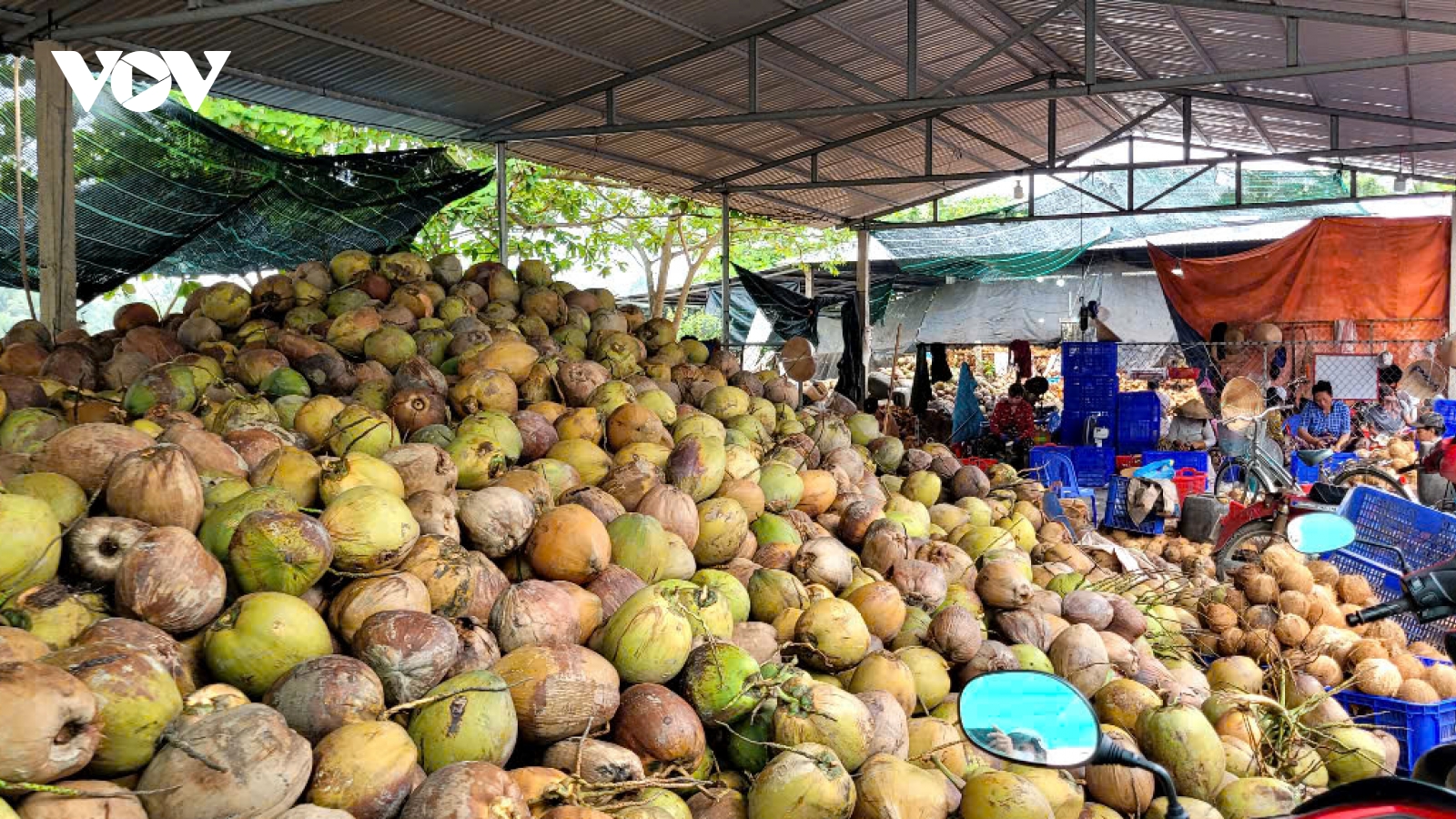 VOV.VN - Gần đây, trái dừa tươi và dừa khô ở tỉnh Bến Tre đều tăng giá đột biến. Thị trường mua bán trái dừa và sản xuất kinh doanh các mặt hàng từ dừa ở địa phương này về gần Tết cổ truyền trở nên sôi động.