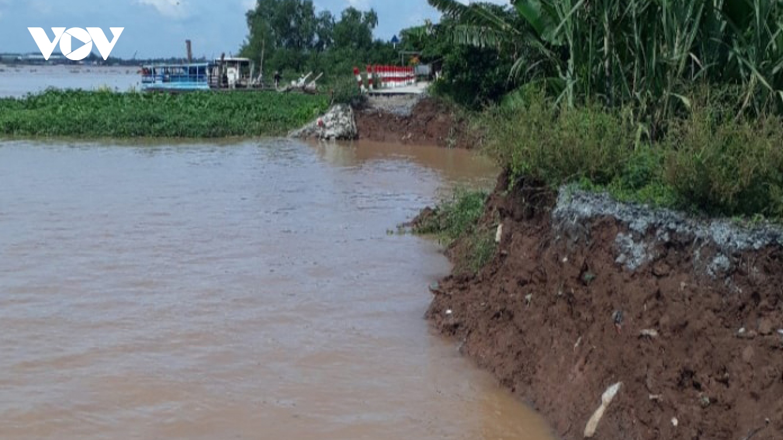VOV.VN - Hiện nay, tình hình sạt lở tại cồn Phú Đa thuộc xã Vĩnh Bình, huyện Chợ Lách (tỉnh Bến Tre), diễn biến phức tạp. Đặc biệt, một đoạn bờ kè dài 50 mét và hơn 4.000 m2 đất bãi bồi bị sụp xuống dòng sông cần được khắc phục khẩn cấp.