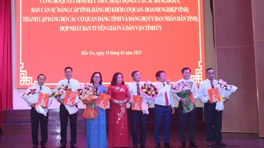 VOV.VN - Ngày 19/2, Ban Thường vụ Tỉnh ủy Bến Tre tổ chức Hội nghị công bố các Quyết định về sắp xếp, tinh gọn tổ chức bộ máy theo tinh thần Nghị quyết số 18-NQ/TW của Ban Chấp hành Trung ương Đảng khóa XII.