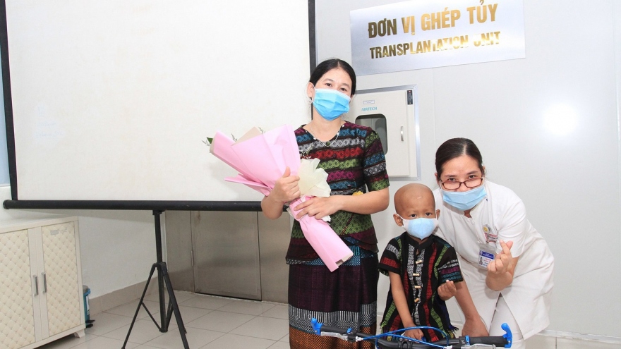 VOV.VN - Ngày 13/4, Bệnh viện Trung ương Huế làm thủ tục xuất viện cho bệnh nhi đầu tiên của Việt Nam mắc u nguyên bào võng mạc được chữa khỏi nhờ phương pháp ghép tế bào gốc tự thân.