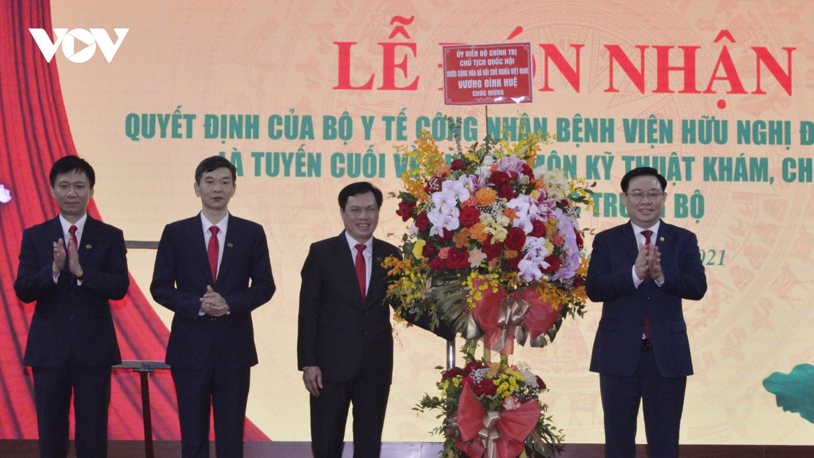 VOV.VN - Chủ tịch Quốc hội đã dự Lễ đón nhận Quyết định của Bộ Y tế công nhận Bệnh viện Hữu nghị đa khoa Nghệ An là bệnh viện tuyến cuối về chuyên môn kỹ thuật khám, chữa bệnh khu vực Bắc Trung Bộ.
