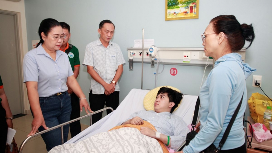 VOV.VN - Liên quan vụ cháy căn nhà 1 trệt, 4 lầu làm phòng trọ cho thuê trên đường số 10, phường Tăng Nhơn Phú B, TP. Thủ Đức, ngày 28/12, Đoàn công tác của Ủy ban MTTQ TP.HCM đã đến thăm, động viên và trao hỗ trợ cho các nạn nhân bị thương trong vụ cháy.