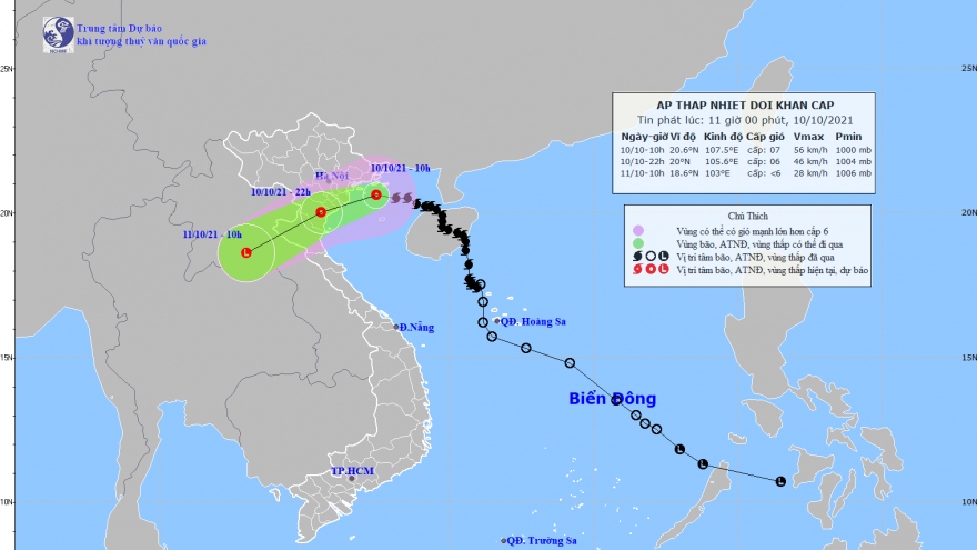 VOV.VN - Trong 24-48 giờ tới, áp thấp nhiệt đới di chuyển theo hướng Tây Tây Bắc, tốc độ 5 -10km/h, dự báo mạnh lên thành bão, cường độ mạnh cấp 8, giật cấp 10.