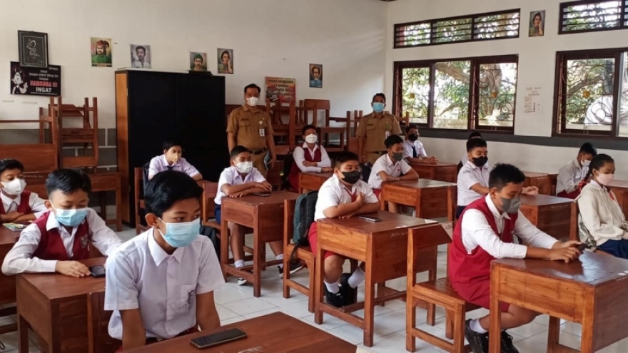 VOV.VN - Ngày 3/1, hàng ngàn học sinh ở các khu vực an toàn với Covid-19 của Indonesia trở lại trường sau gần 2 năm học tập trực tuyến. Tuy nhiên, theo ghi nhận của phóng viên VOV tại Indonesia, chỉ sau hơn 1 tuần mở cửa, nhiều trường học đã phát hiện các ca mắc Covid-19, trong đó biến thể Omicron.