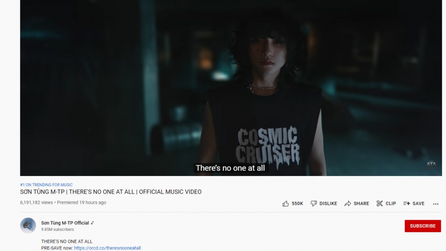 VOV.VN - Chưa đầy 24h sau khi được phát hành trên mạng, MV “There's No One At All” của Sơn Tùng M-TP đã bị 2 cơ quan quản lý phối hợp ra quyết định dừng lưu hành và có biện pháp ngăn chặn lưu hành, phổ biến.