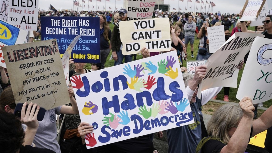 VOV.VN - Hàng triệu người đã tham gia khoảng 1.400 cuộc biểu tình trên khắp nước Mỹ ngày 5/4 để phản đối các chính sách của chính quyền Tổng thống Donald Trump.