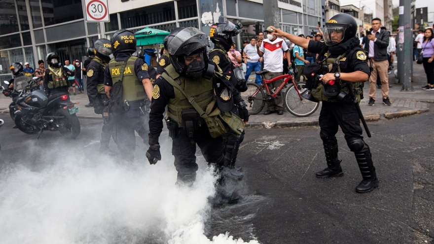 VOV.VN - Tổng thống Peru Dina Boluarte vừa kêu gọi Quốc hội nước này sớm thông qua quyết định tổ chức tổng tuyển cử sớm giữa lúc làn sóng tuần hành chống chính phủ diễn ra ngày càng rầm rộ.