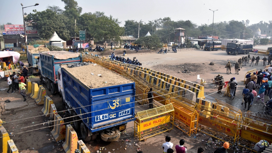 VOV.VN - Giao thông tại thủ đô New Delhi của Ấn Độ bị đình trệ, đặc biệt tại các cửa ngõ của thành phố trong bối cảnh các nghiệp đoàn nông dân phát động biểu tình nhằm phản đối 3 đạo luật cải cách nông nghiệp.