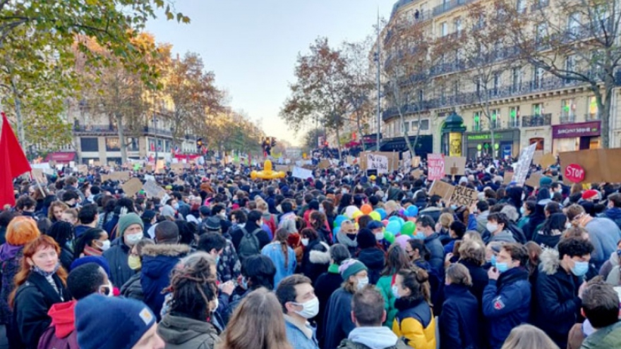 VOV.VN - Ngày 28/11, bất chấp quy định phong tỏa toàn quốc đang còn hiệu lực, hàng trăm nghìn người Pháp đã xuống đường tại nhiều thành phố lớn trên toàn quốc để phản đối một dự luật về an ninh.