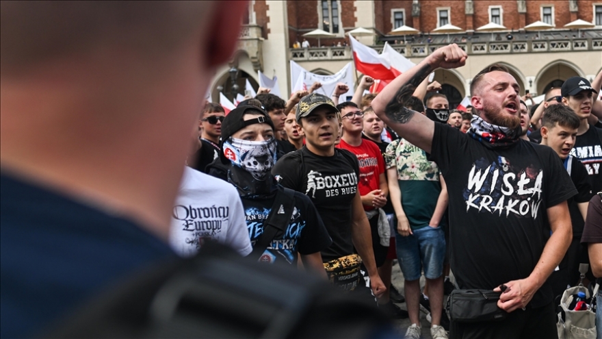 VOV.VN - Ngày 19/7, cảnh sát đã buộc phải can thiệp sau khi xảy ra đụng độ giữa những người biểu tình chống nhập cư và những người phản đối biểu tình tại thủ đô Warsaw và các thành phố khác của Ba Lan.