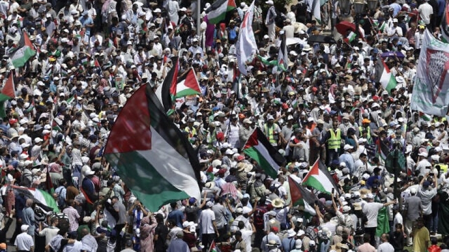 VOV.VN - Hôm qua, hàng chục nghìn người tại thủ đô của Morocco đã tiến hành biểu tình phản đối cuộc chiến kéo dài hơn 21 tháng qua của Israel vào dải Gaza khiến hàng chục nghìn dân thường thiệt mạng và gây ra cuộc khủng hoảng nhân đạo chưa từng có tại đây.