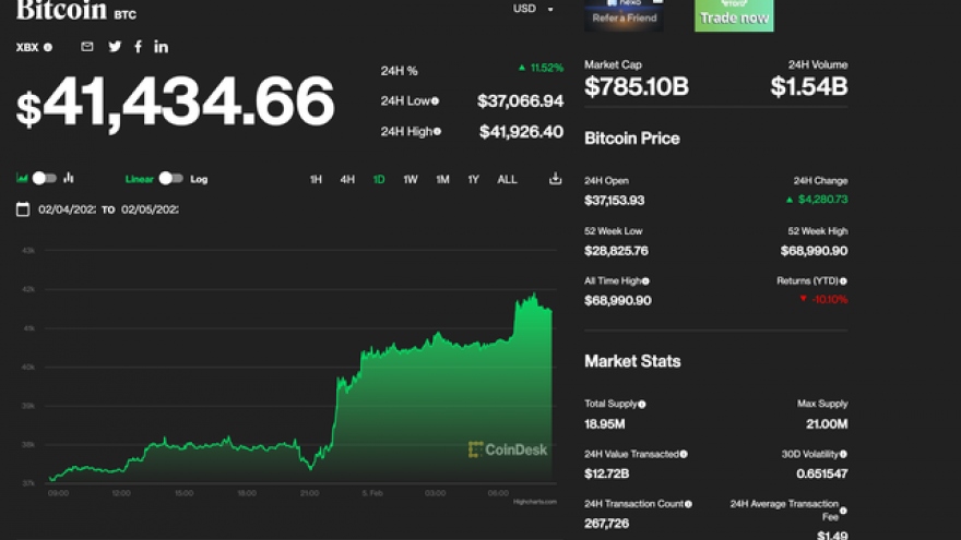 VOV.VN - Kênh thông tin tài chính Mỹ CNBC dẫn lời chuyên gia dự báo "sốc" về Bitcoin, cho rằng đồng tiền mã hóa này có thể cán mốc 100.000 USD vào cuối tháng 6 năm nay.