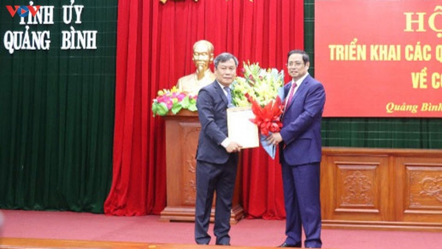 VOV.VN - Chiều 30/9, ông Trịnh Xuân Trường, Bí thư Tỉnh ủy Lào Cai được Bộ Chính trị điều động, phân công, chỉ định giữ chức Bí thư Tỉnh ủy Thái Nguyên nhiệm kỳ 2025-2030. Ủy viên Bộ Chính trị, Trưởng ban Tổ chức Trung ương Lê Minh Hưng dự và trao quyết định.
