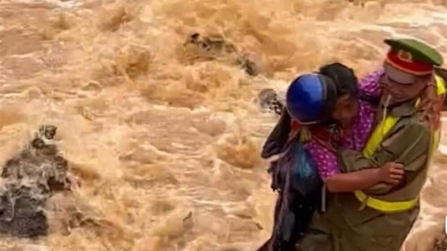 VOV.VN - Bộ trưởng Bộ Công an Lương Tam Quang ghi nhận, đánh giá cao và biểu dương hành động dũng cảm của Thượng úy Nguyễn Mạnh Tường đã lao vào cơn lũ giải cứu người dân.