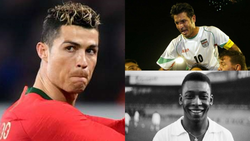 VOV.VN - Top 10 chân sút vĩ đại nhất ở ĐTQG trên toàn thế giới, Ronaldo với 107 bàn thắng cho Bồ Đào Nha đang đứng thứ 2, kém người dẫn đầu là Ali Daei (Iran) đúng 2 bàn.