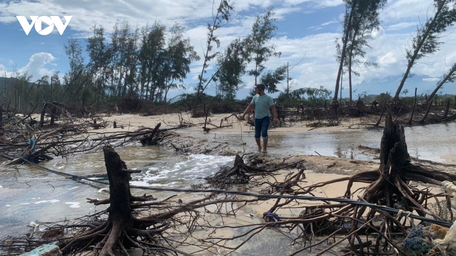 Sau bão số 4, bờ biển ở Thừa Thiên Huế tiếp tục sạt lở nghiêm trọng