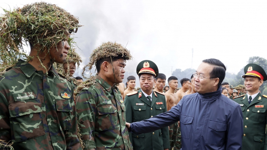 VOV.VN - Đánh giá cao chất lượng công tác huấn luyện, sẵn sàng chiến đấu của bộ đội đặc công, Chủ tịch nước Võ Văn Thưởng động viên cán bộ, chiến sĩ nỗ lực không ngừng, khắc phục điều kiện thời tiết giá lạnh, kiên trì luyện tập, làm chủ nhiều nội dung huấn luyện có độ khó và phức tạp cao; sẵn sàng chiến đấu trong mọi tình huống.