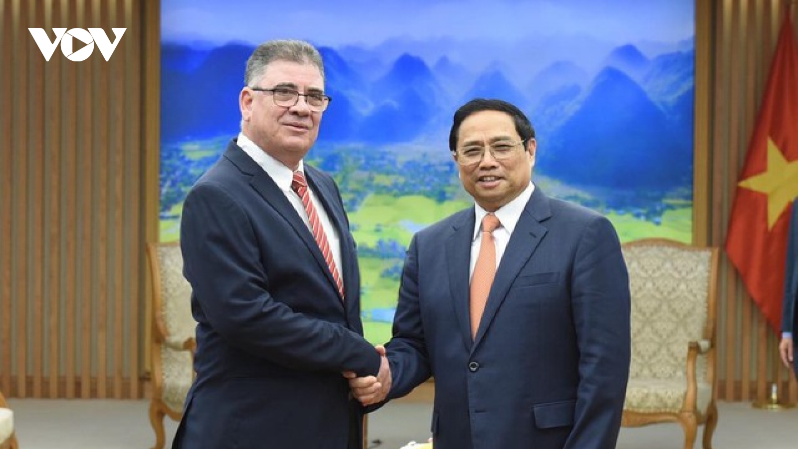 VOV.VN - Chiều tối 16/5, Thủ tướng Chính phủ Phạm Minh Chính tiếp Bộ trưởng Bộ Nội vụ Cuba Alberto Álvarez Casas và Đoàn đại biểu cấp cao Bộ Nội vụ Cuba đang thăm và làm việc tại Việt Nam.