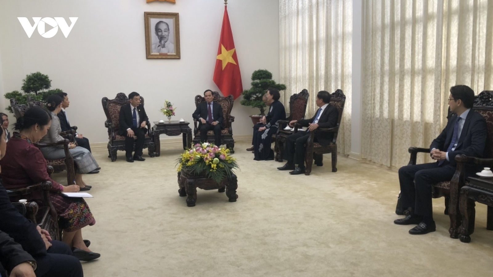 VOV.VN - Chiều 23/5, tại trụ sở Chính phủ, Phó Thủ tướng Trần Lưu Quang tiếp Bộ trưởng Bộ Nội vụ Lào - Thongchanh Manixay, dẫn đầu Đoàn đại biểu cấp cao Bộ Nội vụ Lào, đang có chuyến thăm làm việc tại Việt Nam.