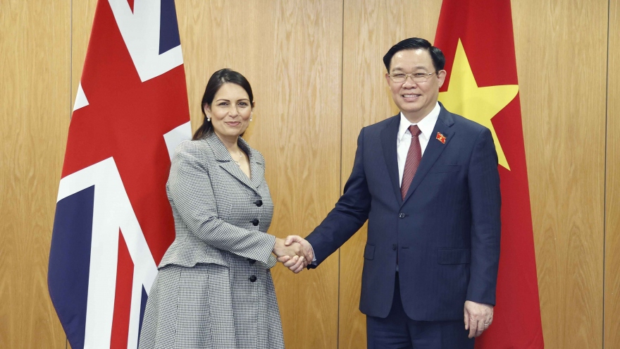 VOV.VN - Tiếp tục chuyến thăm chính thức Vương quốc Anh, trưa 30/6 (theo giờ địa phương), tại trụ sở Bộ Nội vụ Anh, Thủ đô London, Chủ tịch Quốc hội Vương Đình Huệ đã gặp Bộ trưởng Bộ Nội vụ Anh Priti Patel.