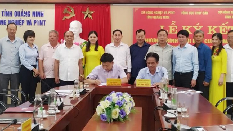 VOV.VN - Tại buổi lễ, 2 địa phương đã thảo luận việc phối hợp tổ chức liên kết sản xuất con giống theo bộ tiêu chuẩn giống bố mẹ, quy trình nuôi, truy xuất nguồn gốc, giấy kiểm dịch...