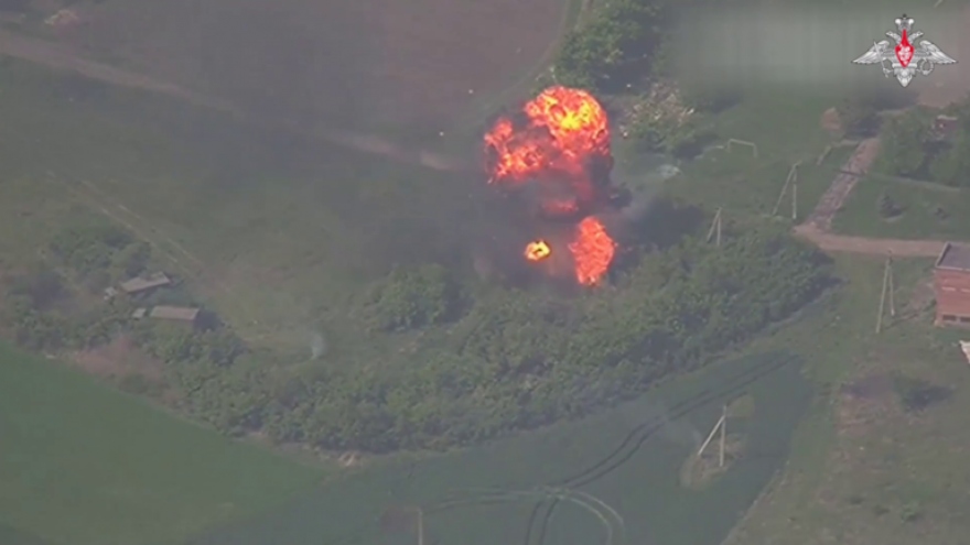 VOV.VN - Bộ Quốc phòng Nga đã công bố đoạn video ghi lại cuộc pháo kích của nước này nhằm vào kho đạn dược của Ukraine với một số xe tải chở đạn bị phá hủy trong một đám cháy lớn.