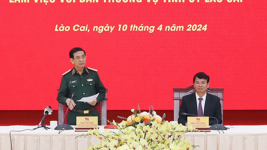 VOV.VN - Chiều 10/4, tại Lào Cai, Đoàn công tác của Bộ Quốc phòng do Đại tướng Phan Văn Giang, Ủy viên Bộ Chính trị, Bộ trưởng Bộ Quốc phòng làm trưởng đoàn, đã có buổi làm việc với Ban Thường vụ Tỉnh ủy Lào Cai.
