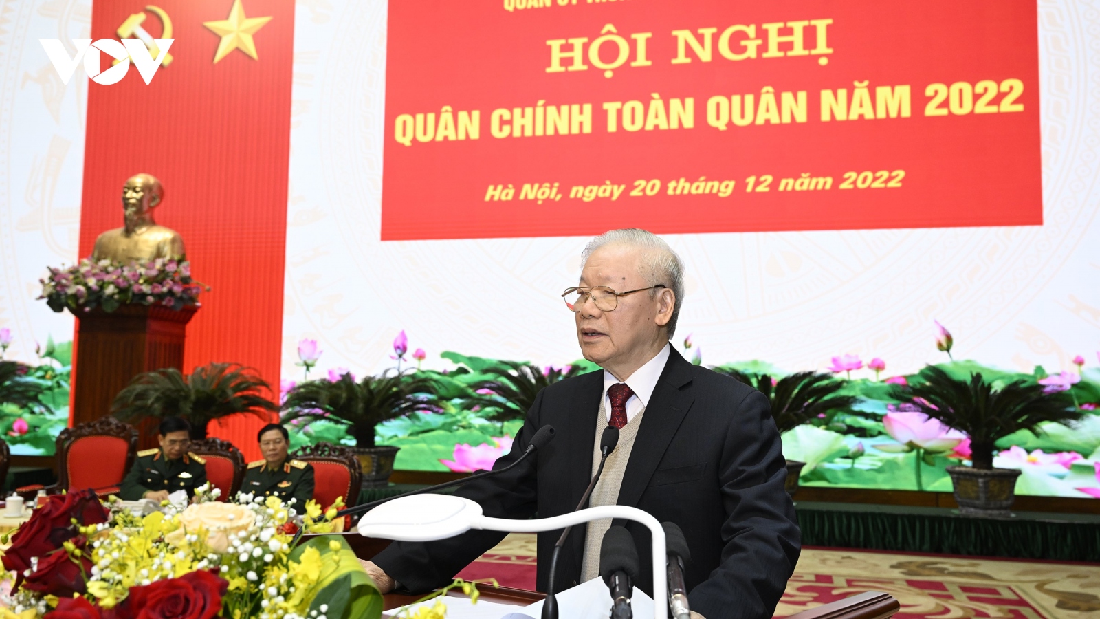 VOV.VN - Sáng 20/12, Quân ủy Trung ương, Bộ Quốc phòng tổ chức Hội nghị Quân chính toàn quân năm 2022. Tổng Bí thư Nguyễn Phú Trọng, Bí thư Quân ủy Trung ương tới dự và phát chỉ đạo hội nghị.
