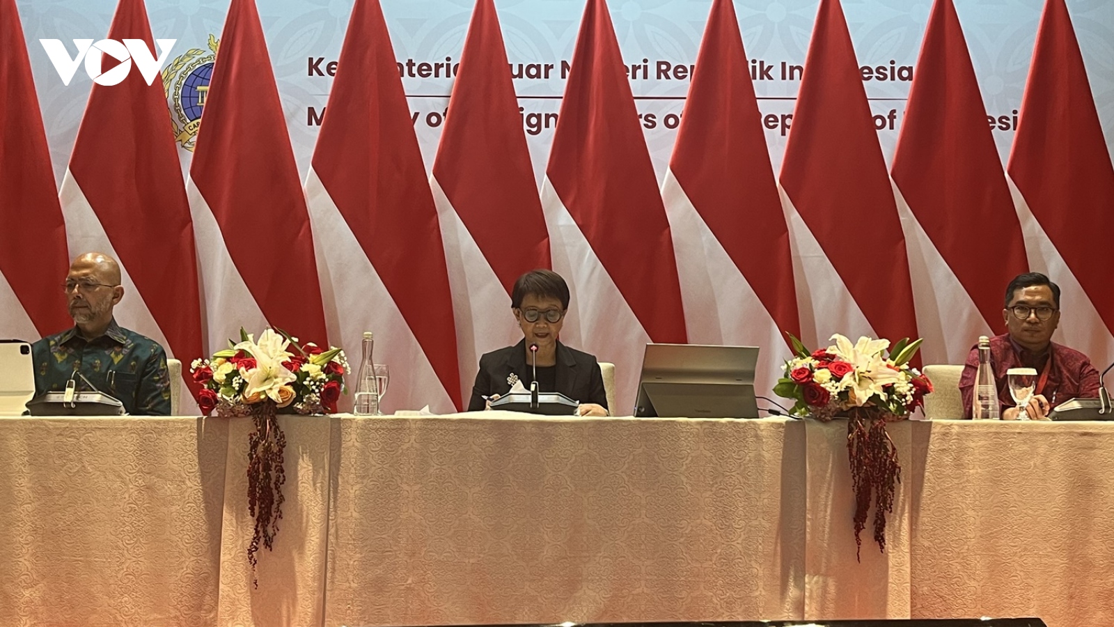VOV.VN - Phiên họp toàn thể Hội nghị Bộ trưởng Ngoại giao ASEAN lần thứ 56 diễn ra hôm nay tại Jakarta (Indonesia) với trọng tâm thảo luận về tiến trình xây dựng Cộng đồng ASEAN, triển khai Tầm nhìn ASEAN về Ấn Độ Dương-Thái Bình Dương, quan hệ đối ngoại và cấu trúc khu vực.