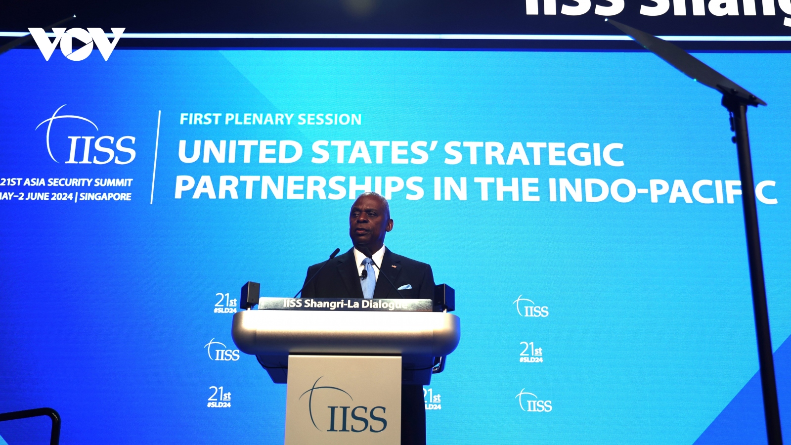 VOV.VN - Đối thoại Shangri La lần thứ 21 tại Singapore hôm nay (1/6) tiếp tục là tâm điểm thu hút sự quan tâm của quốc tế, trong đó đặc biệt là bài phát biểu của Bộ trưởng Quốc phòng Mỹ Lloyd Austin về sự hợp tác chiến lược của Mỹ tại khu vực Ấn Độ Dương - Thái Bình Dương.