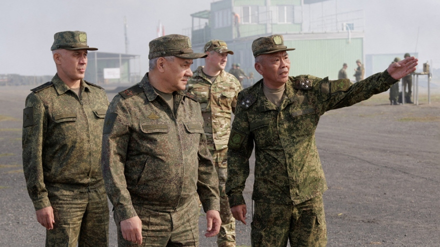 VOV.VN - Bộ trưởng Bộ Quốc phòng Nga Sergey Shoigu ngày 5/10 đã thị sát một thao trường của Quân khu miền Nam và tổ chức họp với các chỉ huy lực lượng chiến đấu ở Ukraine, đề cập đến việc đào tạo binh sỹ và tình nguyện viên trong các đơn vị dự bị.