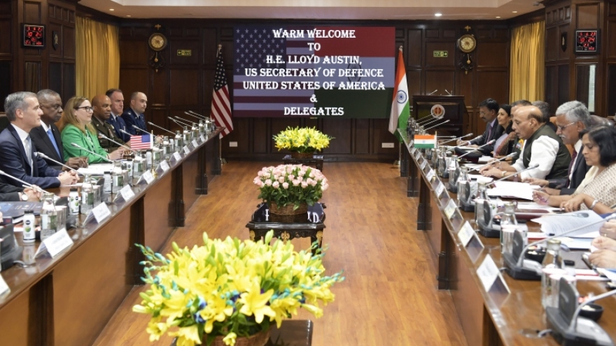 VOV.VN - Bộ trưởng Quốc phòng Ấn Độ Rajnath Singh ngày 5/6 có cuộc hội đàm với người đồng cấp Mỹ Lloyd Austin tại New Delhi để thảo luận các biện pháp nhằm tăng cường quan hệ quốc phòng song phương.