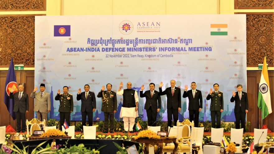 VOV.VN - Ngay sau Hội nghị Hẹp Bộ trưởng Quốc phòng các nước ASEAN (ADMM Hẹp) diễn ra sáng 22/11 tại Siem Reap (Campuchia) là Cuộc gặp không chính thức giữa các Bộ trưởng Quốc phòng ASEAN với Bộ trưởng Quốc phòng Ấn Độ Rajnath Singh.