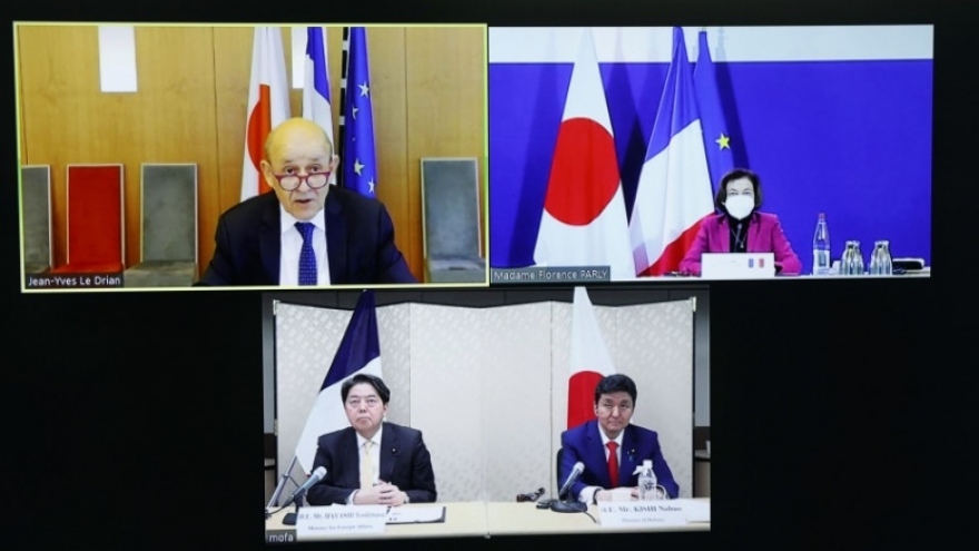 VOV.VN - Nhật Bản và Pháp hôm qua (20/1) tổ chức Hội nghị Bộ trưởng ngoại giao và quốc phòng lần thứ 6 (hay còn gọi là Đối thoại chiến lược “2 + 2”). Hai bên đã ra tuyên bố chung trong đó nhất trí làm sâu sắc hơn quan hệ an ninh ở khu vực Ấn Độ Dương - Thái Bình Dương.