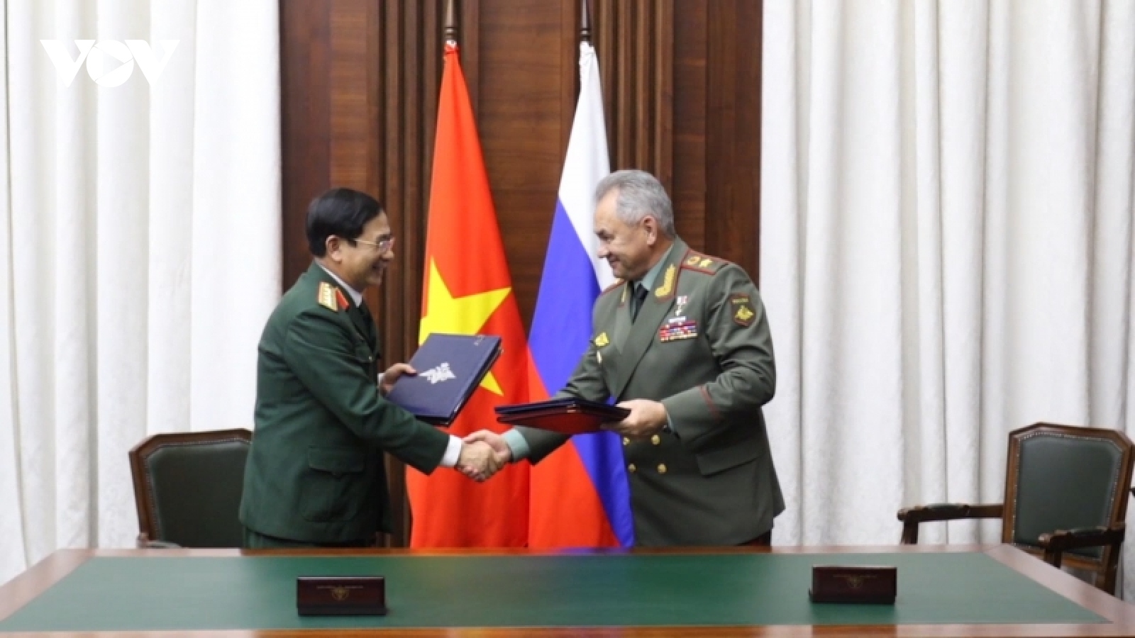 VOV.VN - Với mong muốn hợp tác quốc phòng tiếp tục được mở rộng và đi vào chiều sâu, đạt hiệu quả thiết thực, hai bên nhất trí thời gian tới trên cơ sở các điều ước quốc tế, thỏa thuận quốc tế đã ký kết.