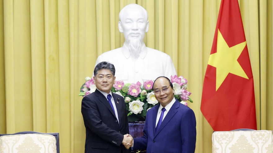 VOV.VN - Chiều 28/6, Chủ tịch nước Nguyễn Xuân Phúc đã tiếp Bộ trưởng Tư pháp Nhật Bản Furukawa Yoshihisa cùng Đoàn cán bộ Bộ Tư pháp Nhật Bản sang thăm và làm việc tại Việt Nam.