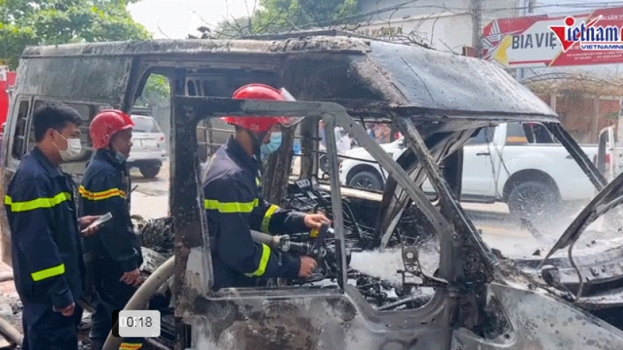 VOV.VN - Chiều 8/2, người dân thành phố Tam Kỳ, tỉnh Quảng Nam bất ngờ phát hiện chiếc xe ô tô 7 chỗ bốc cháy ở bãi đất trống bên đường, một người đã tử vong trong xe.
