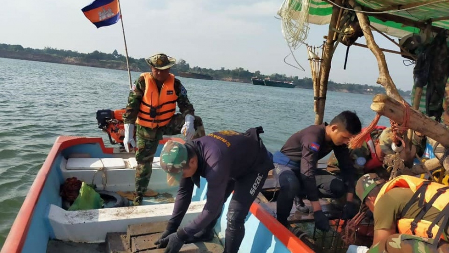 VOV.VN - Hơn 6 tấn bom, mìn và một số đạn dược đã được trục vớt từ một xác con tàu dưới lòng sông Mekong thuộc địa phận tỉnh Kampong Cham, phía Đông Vương quốc Campuchia.