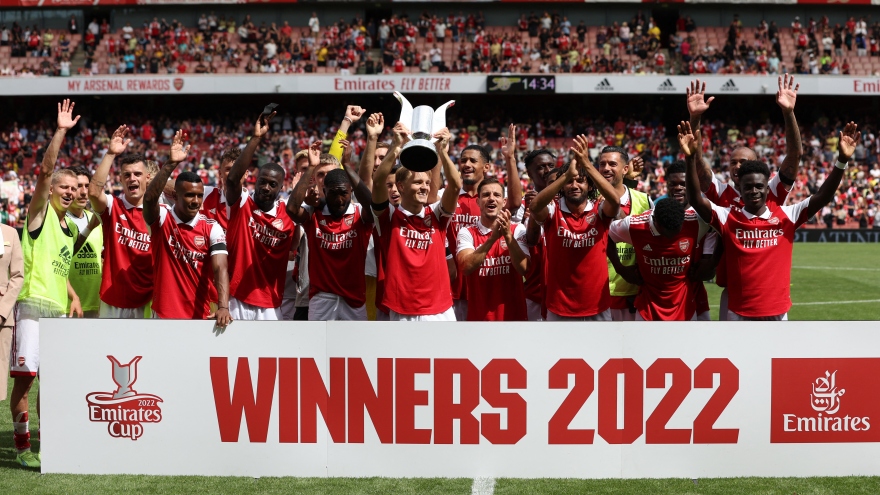 VOV.VN - Cú hat-trick của Gabriel Jesus, cú đúp của Bukayo Saka và 1 bàn của Eddie Nketiah giúp Arsenal giành chiến thắng 6-0 trước Sevilla để vô địch giải giao hữu Emirates Cup.