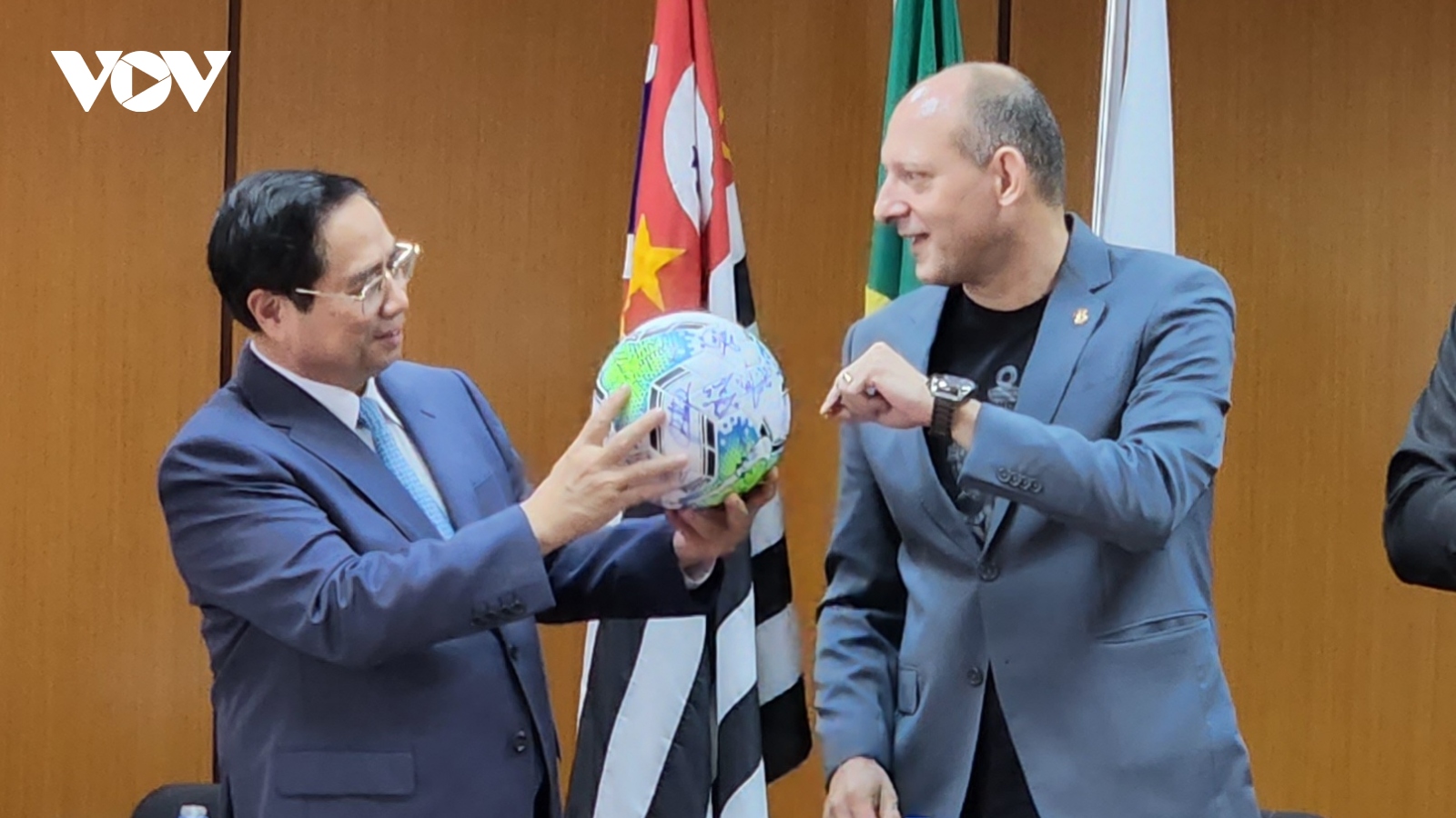 VOV.VN - Chiều 25/9 theo giờ địa phương, trong khuôn khổ chuyến thăm chính thức Cộng hòa Liên bang Brazil, Thủ tướng Chính phủ Phạm Minh Chính đã tới thăm trụ sở và gặp gỡ cán bộ, nhân viên của Đại sứ quán Việt Nam và các cơ quan đại diện của Việt Nam tại Brazil.