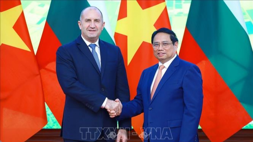 VOV.VN - Trong khuôn khổ chuyến thăm chính thức Việt Nam của Tổng thống Bulgaria Rumen Radev theo lời mời của Chủ tịch nước Lương Cường, chiều 25/11/2024, tại trụ sở Chính phủ, Thủ tướng Chính phủ Phạm Minh Chính đã hội kiến Tổng thống Bulgaria Rumen Radev.