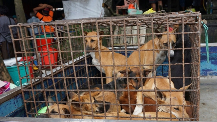 VOV.VN - Chính quyền tỉnh Bali (Indonesia) vừa thu giữ hàng trăm xiên thịt chó bất hợp pháp. Hòn đảo du lịch này đã ra lệnh cấm buôn bán thịt chó vào năm ngoái và những người vi phạm có thể phải đối mặt với mức án lên tới 3 tháng tù hoặc khoản tiền phạt lên tới 50 triệu rupiah (tương đương hơn 3.000 USD).